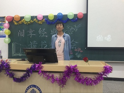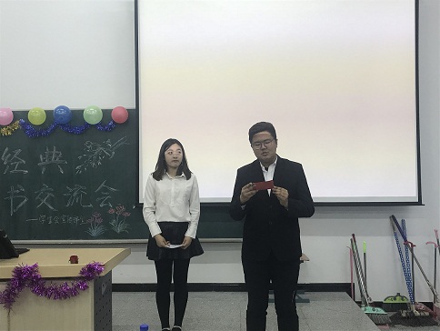 活动由韩佳利、肖钧伟主持,徐铭洋等同学的开场舞拉开了活动的序幕。接下来由郭雨鑫、史小倩、高合德、车广鑫四名同学分别分享他们的读书心得,为大家介绍《活着》、《亮剑》等著名书籍。游戏和互动环节将活动推向高潮。