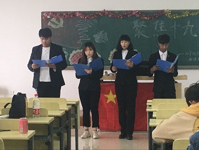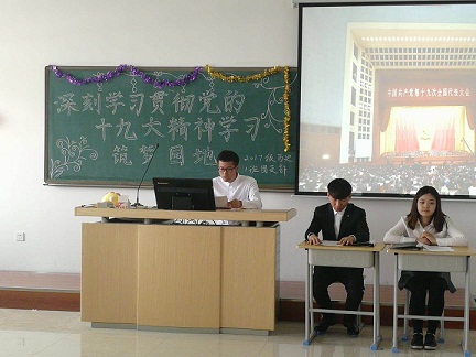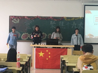 各班紧紧围绕学习十九大精神,通过ppt讲解以及视频讲解的形式,为同学们展示了在党的正确领导下,中国由贫弱走向强大,中国逐渐在国际社会拥有更多的话语权,中国之声响彻云霄。