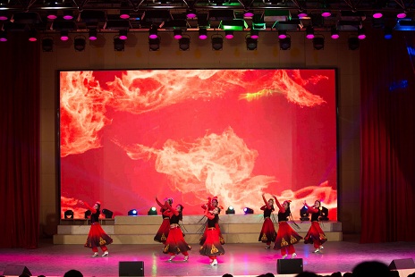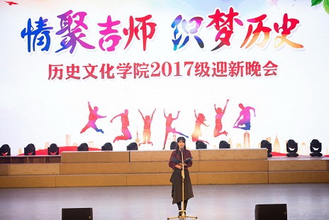 在历时两个多小时的晚会中,演出人员用洋溢的热情为现场观众呈现了一场高潮迭起、精彩倍出的视听盛宴。晚会在激情的开场舞“bad girl+中枪舞”中拉开了序幕,学生会主席2015级满语专业郑国维和2017级历史学专业王博分别代表学院全体在校生和新生发言。随后的三首歌曲串烧,层层有序,展示了历史文化学院学子们的独特风采。多才多艺的学院老师也带来了精彩的表演,无论是于洋老师深情演唱的《高原红》,还是范有芳老师的优美歌舞《美丽的楼兰姑娘》,都赢得了观众们的阵阵掌声。全国著名诗歌朗诵表演艺术家周宇老师朗诵的《孝是一棵常青树》和《选择》更是引爆全场,宣誓着历史文化学院崭新的未来。小品《非常访谈》以轻松幽默的对话掀起热潮,整场表演跌宕起伏,诙谐幽默。最后由团学联主要学生干部带来的温馨歌曲《相亲相爱一家人》为本次晚会画上了圆满的句号,优美的歌声中饱含着学院师生携手共进,共创学院美好明天的决心与希冀。