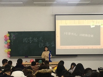 为积极响应学校号召,增强史院学生读书和学术交流氛围,11月20日晚,学院在11113教室举办第五期“阅享经典,读书盛宴”交流活动。活动由学院学生会调研部主办,党总支副书记韩强出席活动,2017级全体新生作为观众参与本次活动。