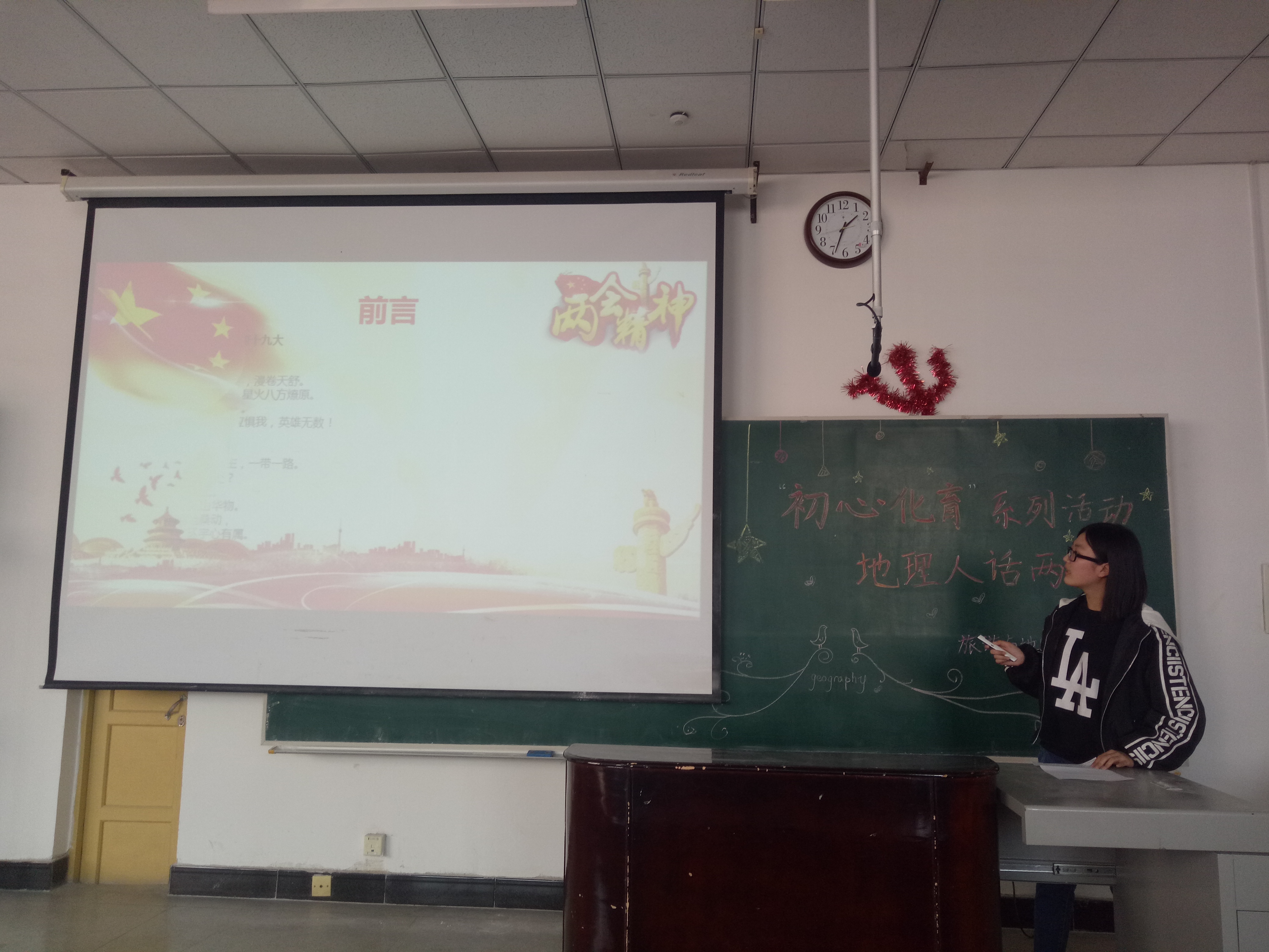以学习宣传贯彻习近平新时代中国特色社会主义思想和党的十九大精神主题主线,继续推进“两学一做”学习教育常态化制度化,提高学生思想素养,坚定理想信念,旅游与地理科学学院学生党支部近日开展党带团系列主题活动:“溯源初心、筑梦未来”、“地理人话两会”,活动以报告的形式展开,由党员带领团员分组讨论交流,并将组内的讨论内容与大家分享。活动中,大部分同学都较为注重十九大与两会中提及的与大学生息息相关的话题,如:初心与使命、新时代大学生思想素养、创新型青年、教育改革、就业问题等。 这次活动的开展,丰富了同学们对习近平新时代中国特色社会主义思想、十九大及两会的了解,更促进党带团的建设,提高了同学们的思想素养,也使同学们更加认识到新时代青年的责任和担当,方法表示应努力拼搏,锐意进取成为新时代的创新性人才。