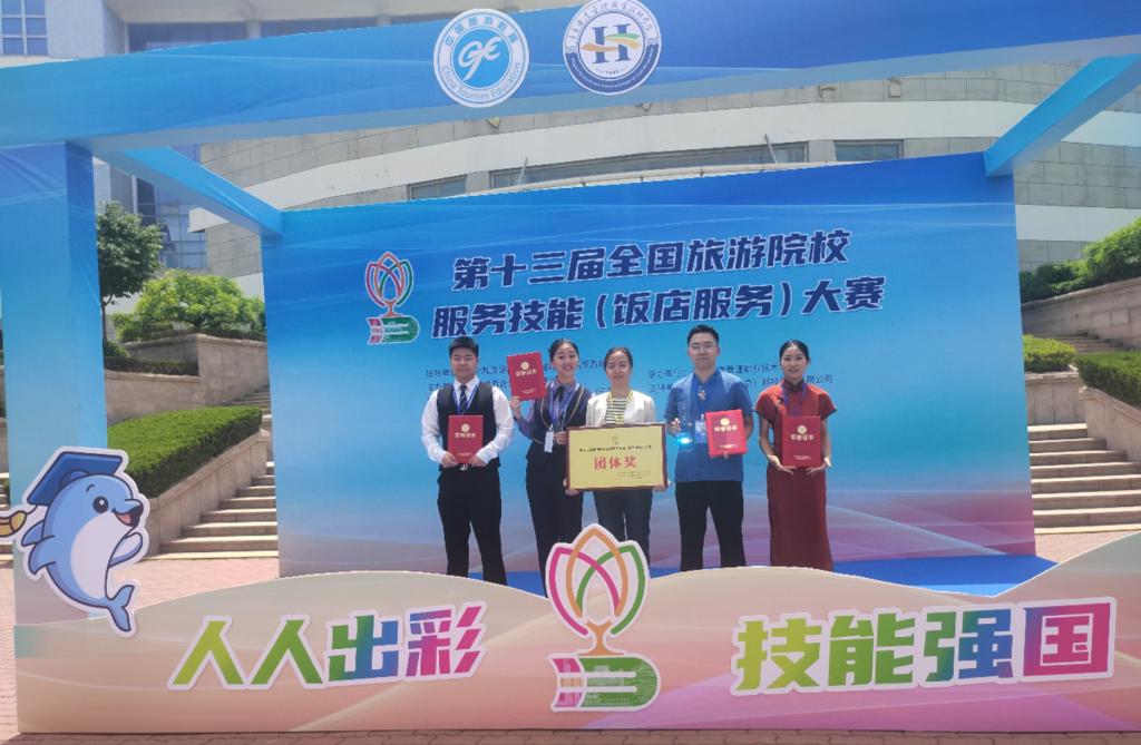 经过历时4天的紧张角逐,在董阿丹,张丽翠,祁丽三位教师的悉心指导下,我院4名参赛选手喜获佳绩。其中马小蕊获高校组西餐宴会摆台赛项一等奖,董天旭获高校组中式铺床赛项一等奖,朱佰兴获高校组鸡尾酒调制赛项二等奖,于柳获中餐宴会摆台赛项二等奖,我院以高校组第六名的成绩获得团体奖。