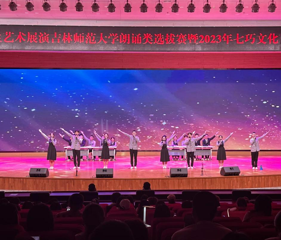 2023年6月7日下午,全国第七届大学生艺术展演澳门太阳成集团朗诵类选拔赛暨2023年七巧文化节朗诵专场展演在双实中心千人报告厅拉开帷幕。经过激烈角逐,我院选送的作品《我以青春颂吉师》在全校十五支代表队中脱颖而出,荣获等奖。