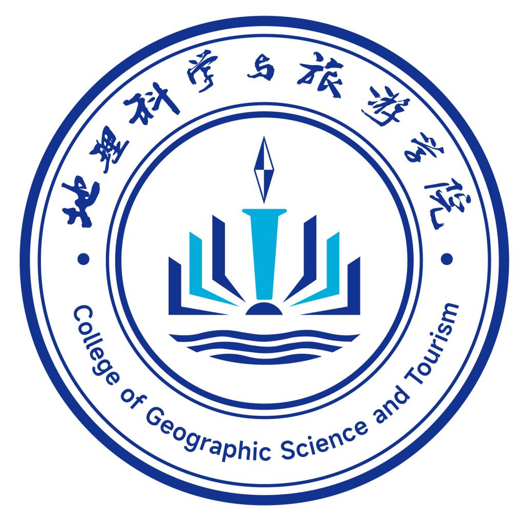 图形元素与蓝色色调一起,呼应地理科学与旅游学院“经天纬地,慎思笃行”的院训,象征学院师生不断奋进创新,广博知识,慎重思索,踏实履行,点亮心中的火炬与梦想。