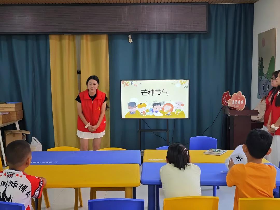 活动伊始,志愿者生动讲解芒种节气的历史起源与节气特点,激发孩子们的学习兴趣。孩子们踊跃分享所知的芒种知识,眼中满是对节气文化的好奇。随着讲解深入,无论是“青梅煮酒论英雄”的历史典故,还是“打泥巴仗”“晒虾皮”等趣味习俗,孩子们听得津津有味,言语间流露出对体验这些传统活动的期待。