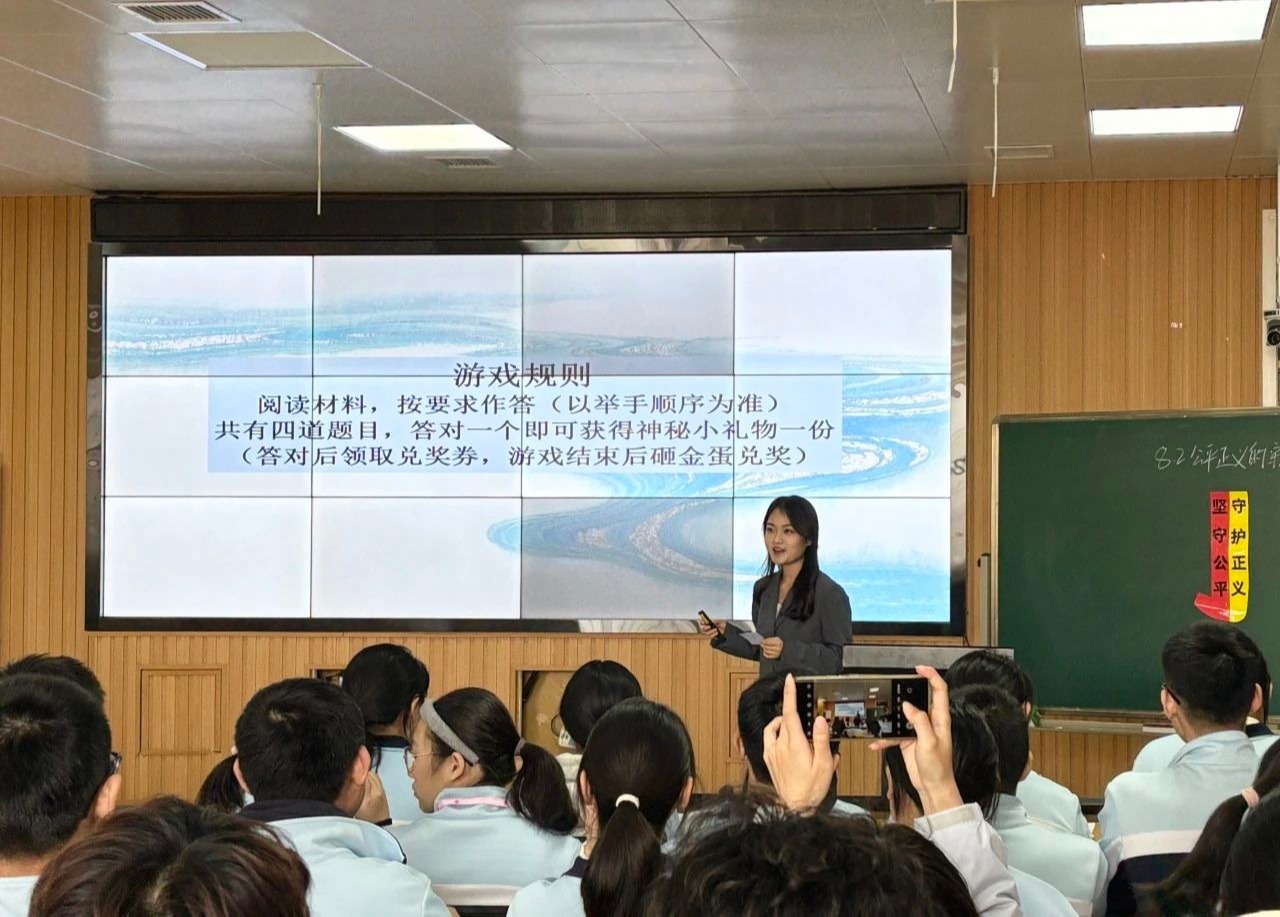 会后,同学们前往澳门太阳成集团附属中学进行道德与法治课观摩。耿淇淇和张思宇两位老师以“做中华优秀传统美德的践行者”为主题进行教学示范,通过鲜活生动的实践案例展示,引导同学们领悟教学设计与课堂管理的精髓,深化对思政课创新教学模式的认识与理解,让同学们对传统美德教育的创新方式有了更直观的体会,为今后的教学设计提供了有益参考。