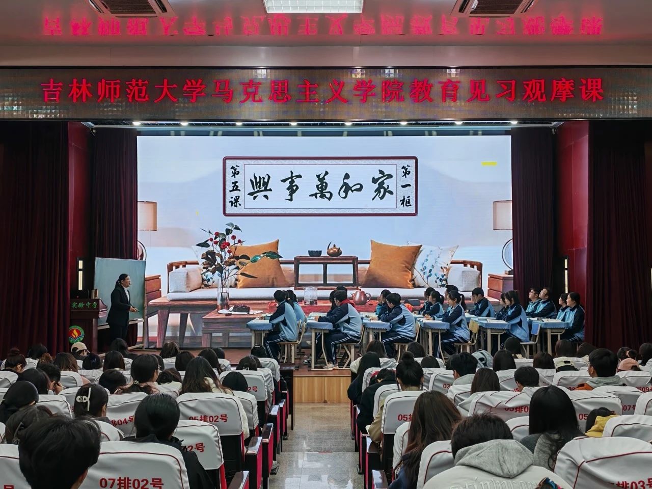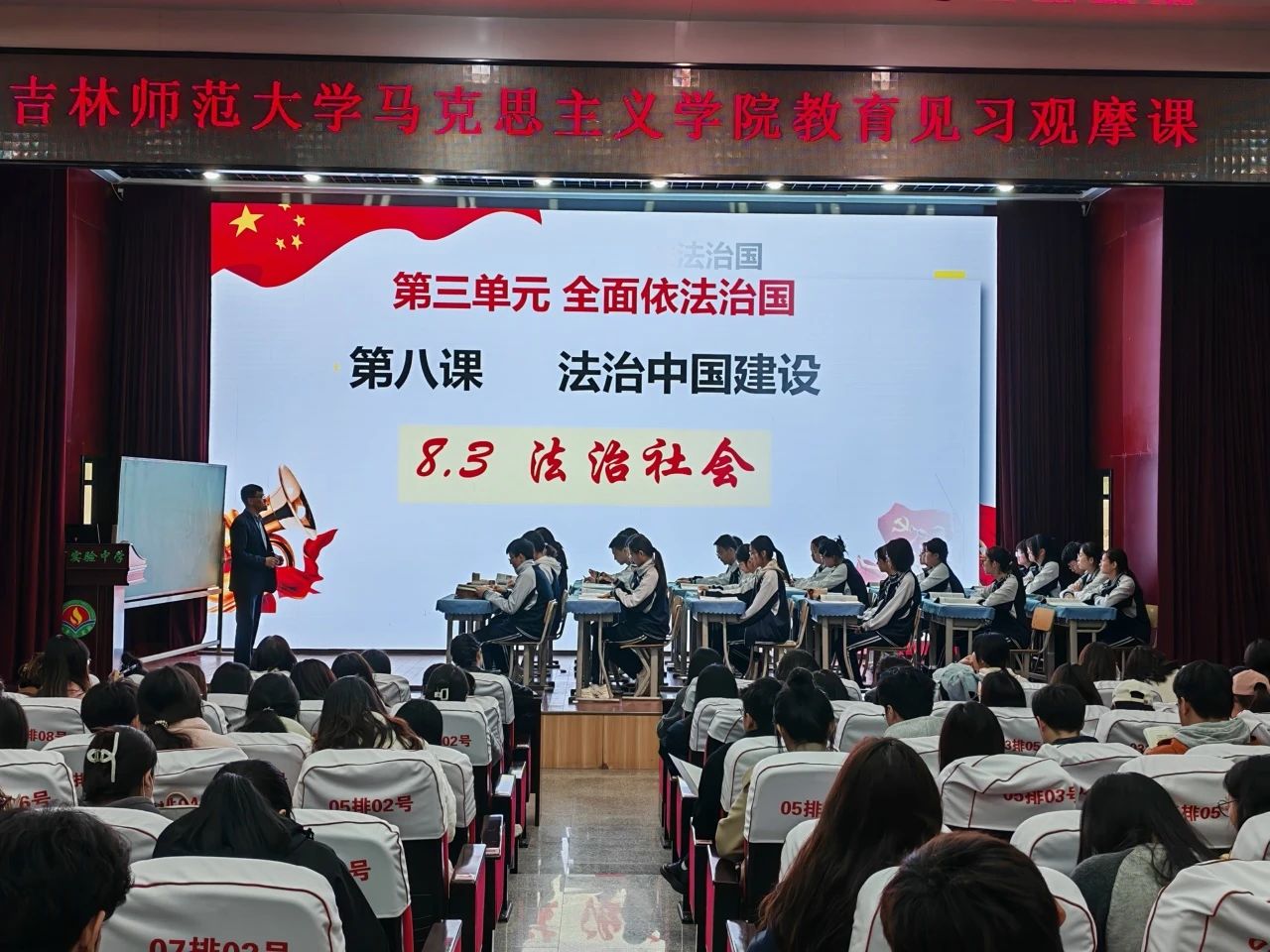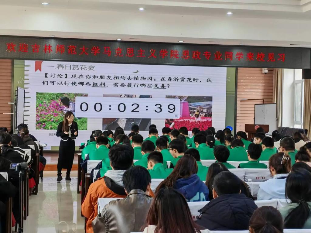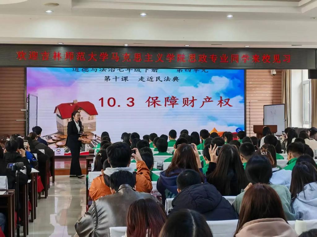 4月17日上午,我院学生来到四平市第十七中学开展初中道德与法治课见习观摩。张傲、戚昊晨两位老师通过视频导入、案例分析、情景演绎等多个教学环节,生动展现理论与实践的有机融合。课堂教学设计合理、教学组织有序,充分彰显中学思政课堂的特色与魅力。此次观摩活动加深我院学生对课堂教学的理解,为今后的教学设计与课堂实践提供了有益借鉴。