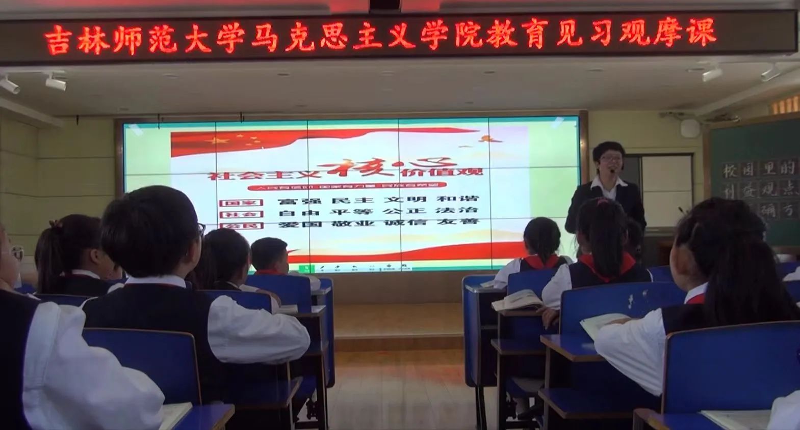 4月18日上午,我院学生前往四平市第二实验小学,深入一线思政课堂进行观摩。陈璐、陈威威两位老师通过视频、谜语引出教学主题,并设置多个互动环节引导低学段学生深入思考其意义,从而培养学生的法治意识与品德观念。学生们在观摩中学习教学技巧,提升专业技能,为今后教育实践积累宝贵经验。