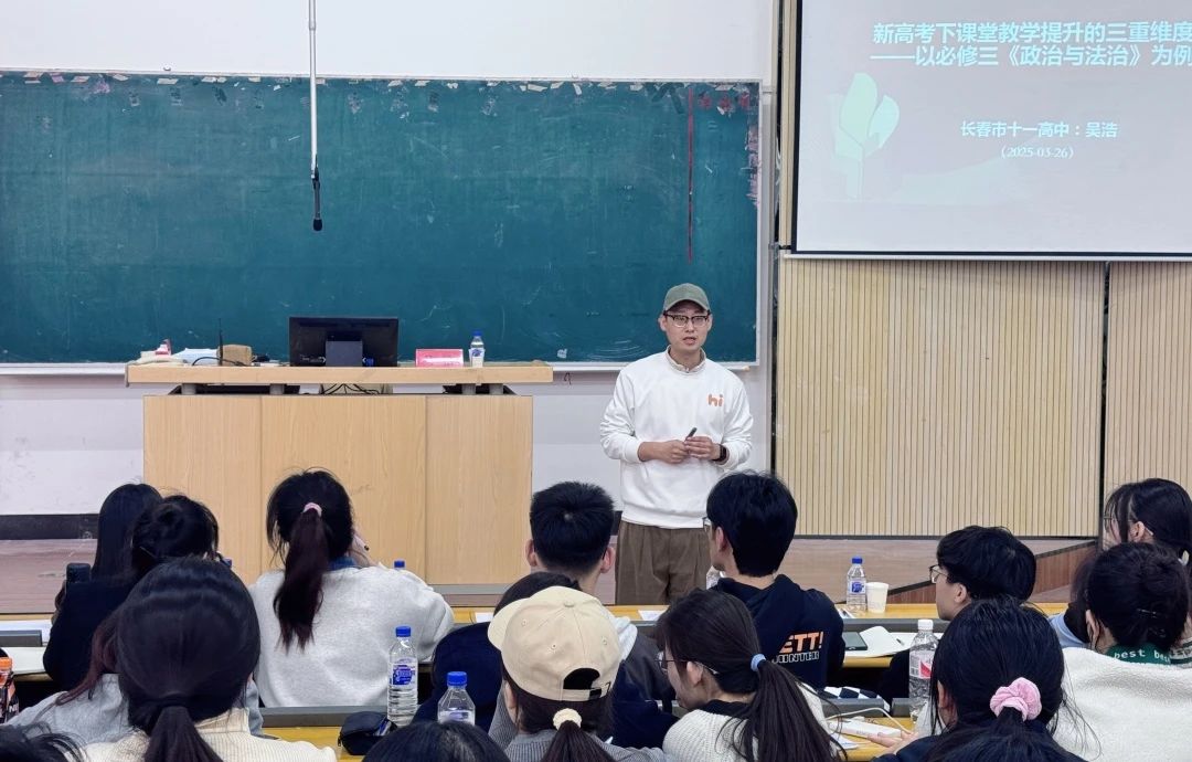 本次讲座特邀长春市十一高中高一政治备课组长、长春市骨干教师吴浩担任主讲人。思想政治教育系主任刘天竹、教法教研室主任苏永利,刘丽艳出席本次活动。2022级部分学生、2024级全体研究生、2023级全体本科生参加。