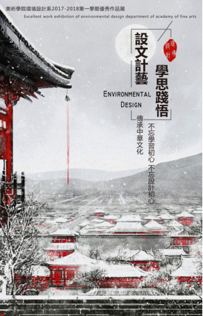 2017年12月25日,美术学院环境设计系在第十一教学楼一楼大厅举办了“设文计艺、学思践悟”优秀学生作品展。此次展览,是环境设计系学生学期教学成果的一个全面展示,共展出设计作品一百余件,模型作品20余件。展览的主题突出传统人文对现代设计的影响,将同一主题的设计以不同风格的作品表现,感悟十九大精神提出的“不忘初心”,强调设计的初衷、学习的初衷、传承的初衷;通过教学成果的学习交流,希望同学们始终不忘学习初心,不忘设计初心,在大学有限的时间里,掌握技艺、锻炼能力,为将来成为一名优秀的设计师而努力!