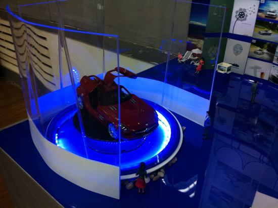 2014年5月8日,为期10天的艺术设计系2011级五班车展设计汇报展览于澳门太阳成集团美术学院一楼展厅顺利开幕,此次展出的为艺术设计2011级五班全体师生共同创作:以各系品牌车体模型为依托进行的配套平面展示及三维实物展厅模型设计方案,美术学院师生给予极大关注,精心布展。院领导对同学的作品给予了充分肯定,同时表达了对同学的祝贺及期望,期待更多专注于实践相结合的设计课题产生。