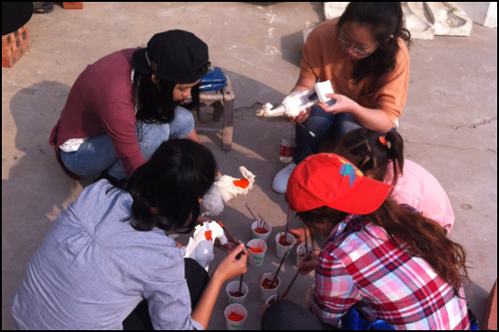 2013年10月,我院设计专业师生开展了专业实践与考察课程。赴河南省洛阳市感受本土民俗及唐三彩文化,并针对唐三彩进行了系统专业的理论教学与动手实践,在洛阳市学习了白粘土胎料素烧、施釉上色及烧制的过程,感受了色彩的相互辉映中,唐三彩工艺堂皇富丽的艺术魅力。