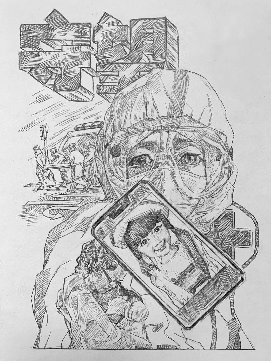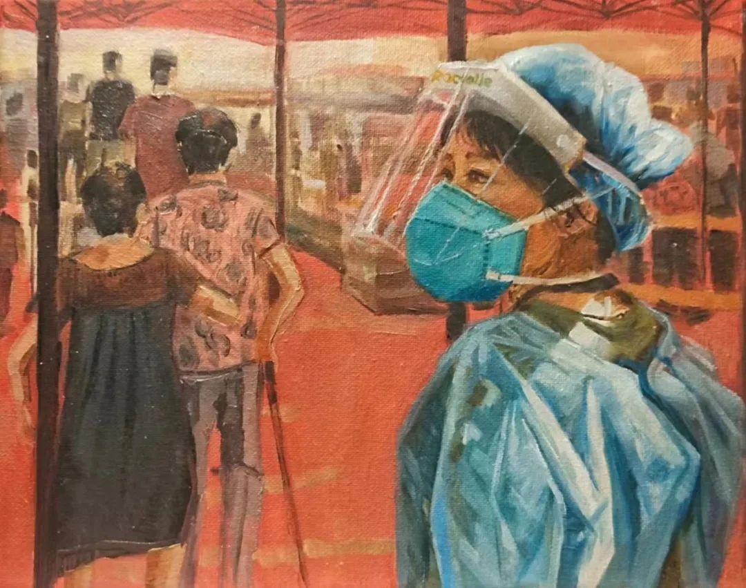 孙崇玮《印象滤镜---核酸检测》水彩画