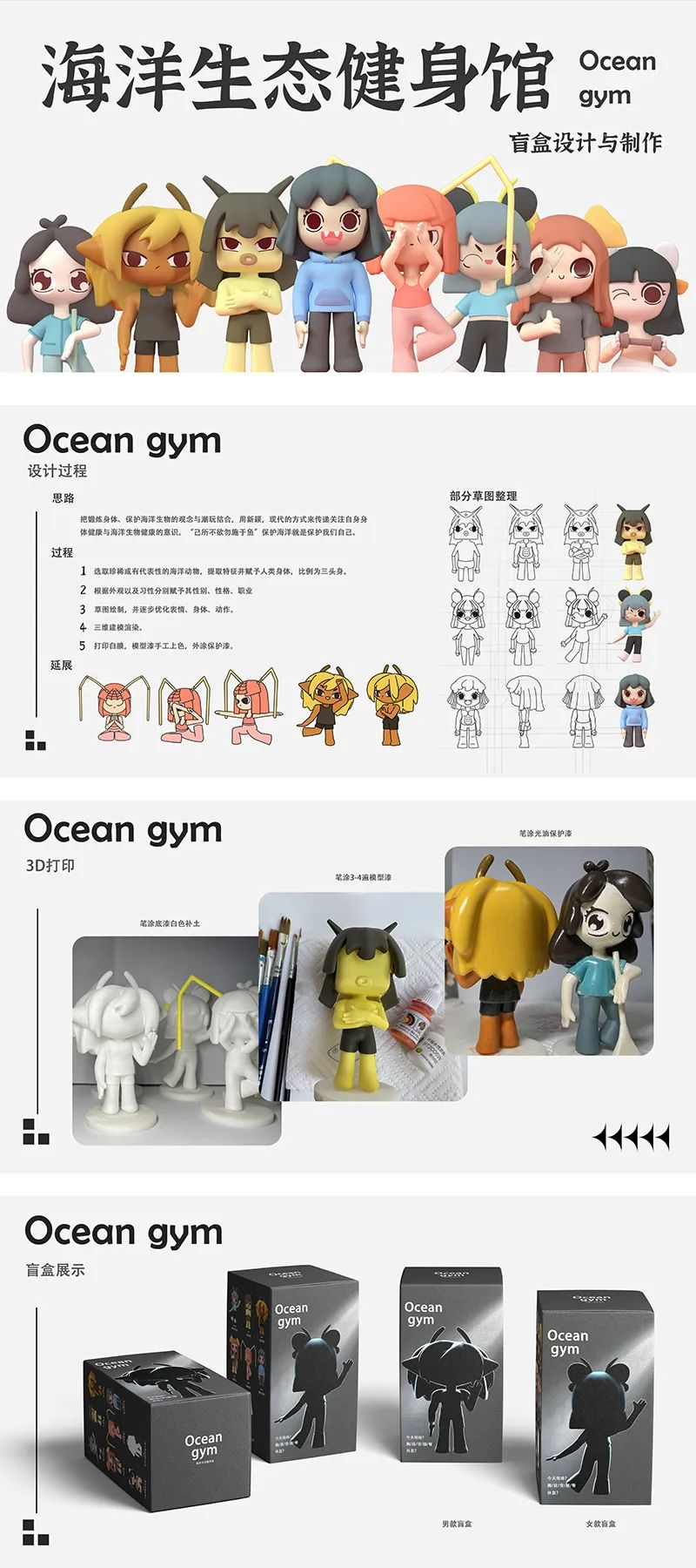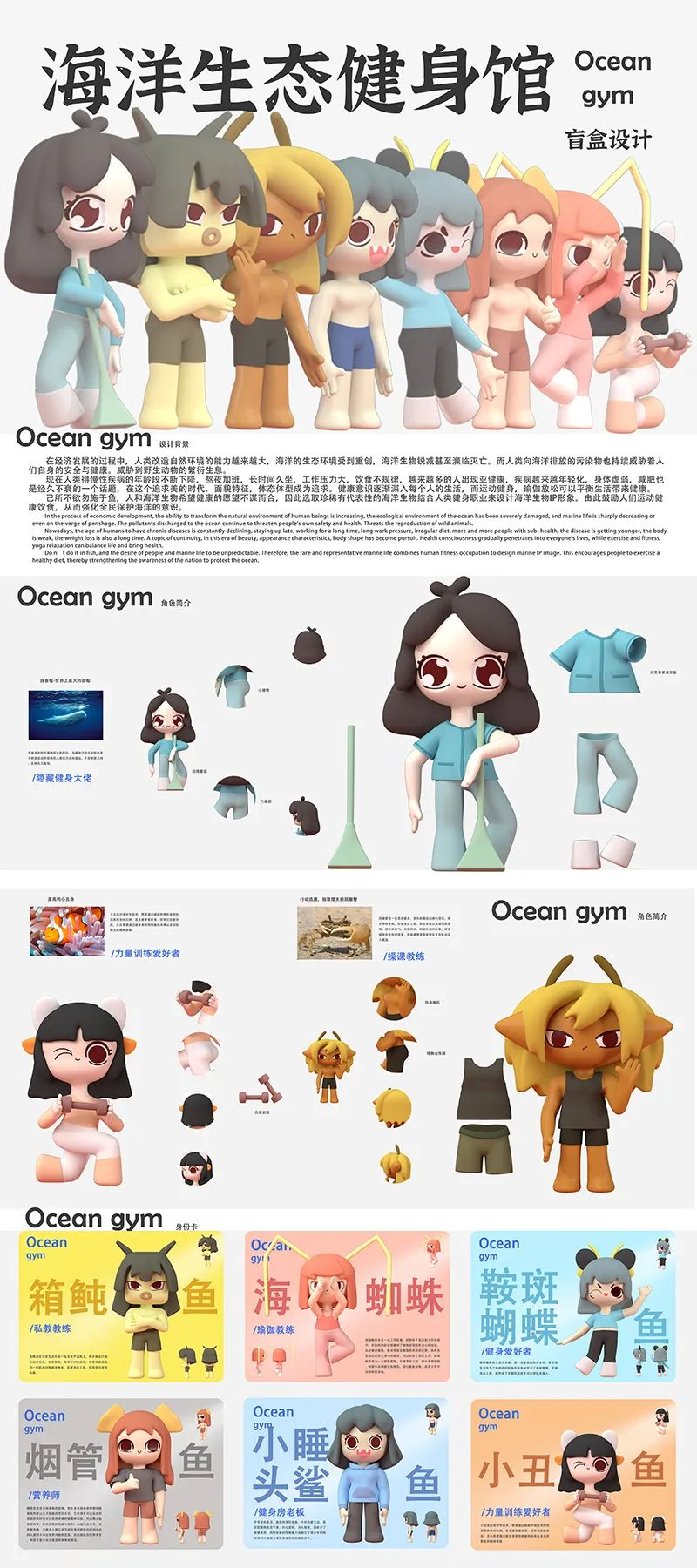 通过健身馆IP的拟人化演绎,将人类关注自身健康与动物关注海洋健康的意愿相结合,将人类对健康的需求与动物对健康环境的需求用当下流行的盲盒方式来展现。