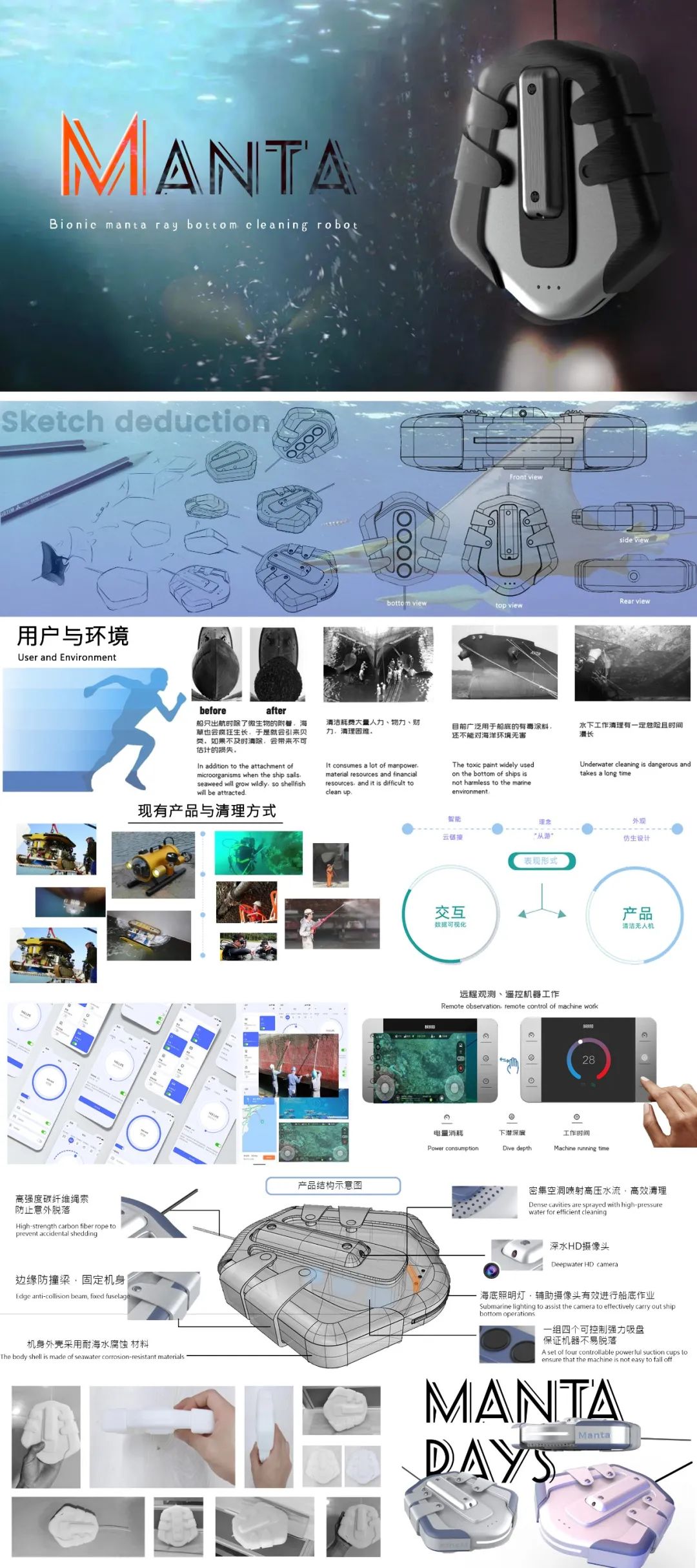 中大型船只的船底附着物在清理问题上一直是个难题,船底附着物的清理不仅耗费大量的人力、物力,同时也存在一定的安全隐患。针对此问题,设计一款基于“从游”理念下的仿生蝠鲼船底清洁机器人,机器人跟随船只出航以实现船底清洁的更快、更易、更廉。