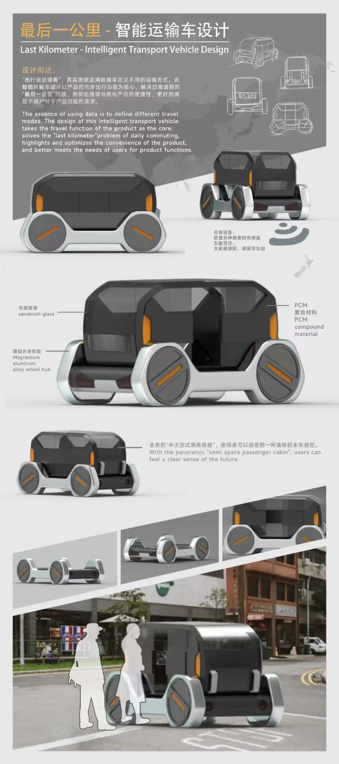 本智能运输车设计将智能、共享、新能源等技术与理念有机地融合在一起,以用户为中心,通过电动化、网联化、自动驾驶技术共同构建智慧出行新生态。