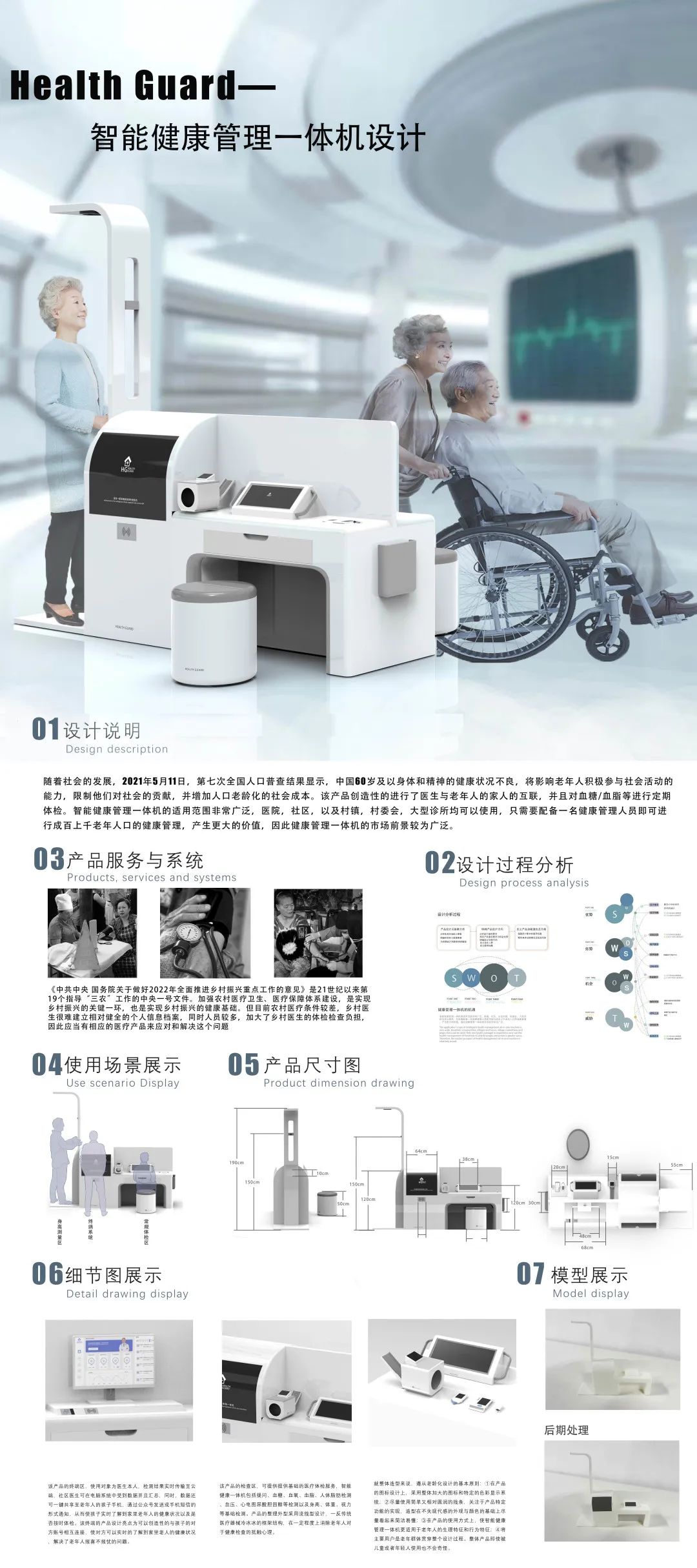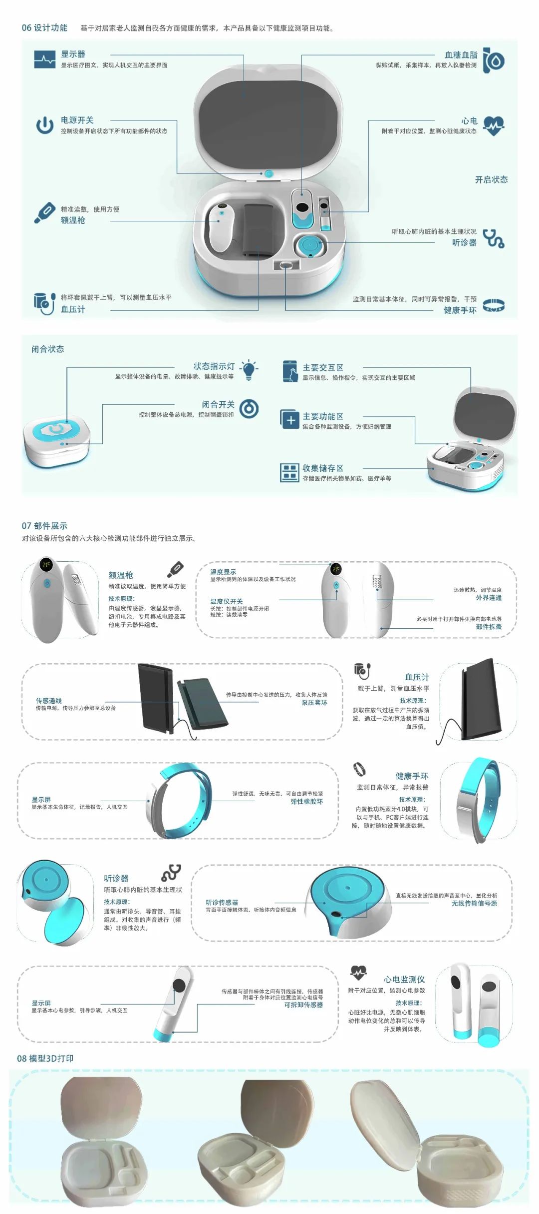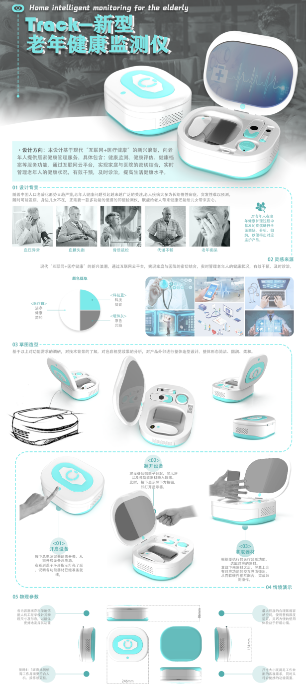 一款适用于社区医院、乡村医院以及偏远地区医疗水平较低的产品,关注老年人的健康问题,实现疾病的提前检查与预防。用物联网将健康信息整合汇总,建立健康档案、普及健康知识、提供个性化建议、减轻大医院体检压力、给予老年群体更多的关怀。