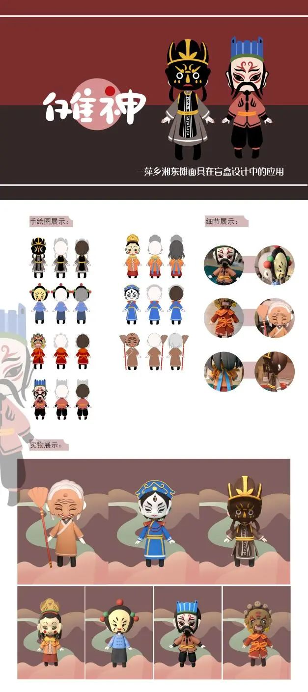 傩文化具有非常浓郁且独特的地方特色和民族色彩,对傩文化中的不同角色进行纹样、服饰、器具的提取并运用在盲盒人物形象的设计上,可以将创新设计与中国传统文化融为一体,在达到美观效果的同时,其核心意义是使这类传统文化更为大众所了解和喜爱。