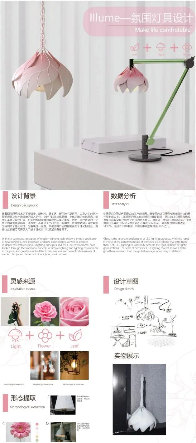 新材料、新工艺、新科技广泛运用,以及人们对各种照明原理及其使用环境的深入研究,本设计将产品的智能化与个性化相结合,遵循行业发展方向并加大产品个性化设计以满足消费者需求。