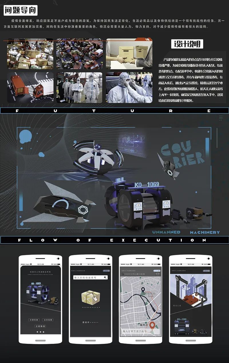 伴随疫情的爆发,密集接触成为最大的防疫安全隐患,建立无人快递系统迫在眉睫。UM——城市无人快递运送终端设计内置消毒设备,减少病毒传播,通过Gps定位系统,精准运送至各个地方,此系统搭配快递搬送机器人、航天无人机以及线上App同时使用,确保安全快速送至客人手中,使生活更加便利,造福社会。