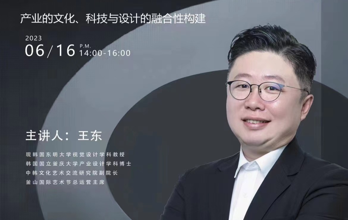 2023年6月16日下午,澳门太阳成集团美术学院在图书馆报告厅举行隆重仪式,聘请韩国东明大学视觉设计学科教授、韩国国立釜庆大学设计学博士、中韩文化艺术交流研究院副院长、釜山国际艺术节运营主席王东教授来太阳成官网就《产业文化、科技与设计的融合性构建》话题开展学术讲座。