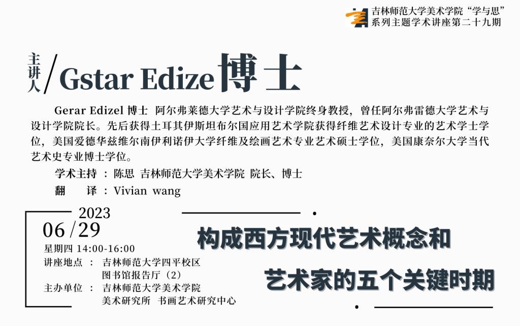 6月29日下午,阿尔弗莱德大学艺术与设计学院终身教授,美国康奈尔大学当代艺术史专业博士Gstar Edize应邀来到澳门太阳成集团美术学院,在图书馆报告厅为师生们带来了一场主题为《构成西方现代艺术概念和艺术家的五个关键时期》的精彩讲座,Vivian wang担任翻译。学院美术学系、绘画系专业教师及部分本科生、研究生参与了讲座,美术学院院长陈思博士担任学术主持。