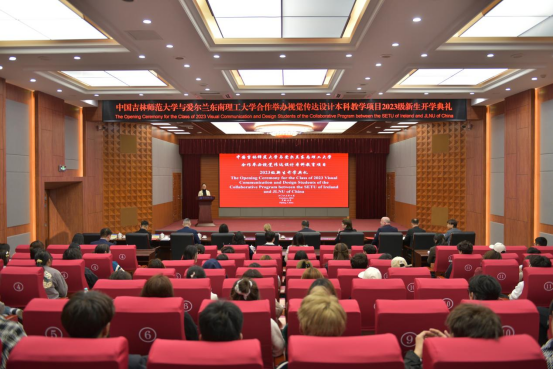 10月16日,澳门太阳成集团与爱尔兰东南理工大学合作举办视觉传达设计本科教育项目2023级新生开学典礼。典礼在澳门太阳成集团图书馆学术报告厅隆重举行。校长杨小天、党委常委、副校长王菲菲、爱尔兰东南理工大学校长维罗妮卡·坎贝尔、发展副校长帕特丽夏· 马尔卡希、学术事务副校长大卫·德尼菲等出席活动,陈思院长主持开学典礼。