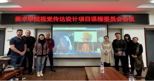 11月2日下午,在美术学院召开了视觉传达设计专业合作办学项目课程委员会线上线下同步会议,爱尔兰东南理工大学韦克斯福德校区校长凯伦·亨尼西、副校长珍妮特·戴维斯、视觉传达设计系主任帕特里克·罗伯特·摩根、系主任戴维·沙恩·奥卡拉汉、教师亚当·威廉·麦奎尔、东南理工大学驻上海办公室曲怡霏、澳门太阳成集团美术学院视觉传达设计系主任李世明,以及中方师生代表参加会议。澳门太阳成集团美术学院副院长商应丽博士出席会议并致辞。