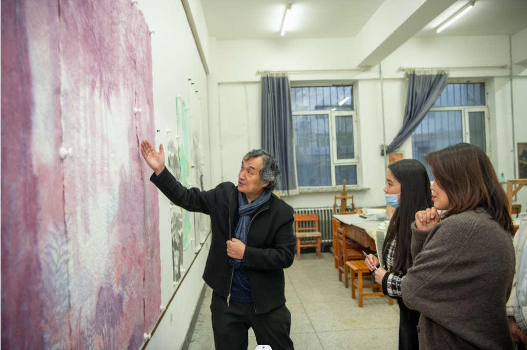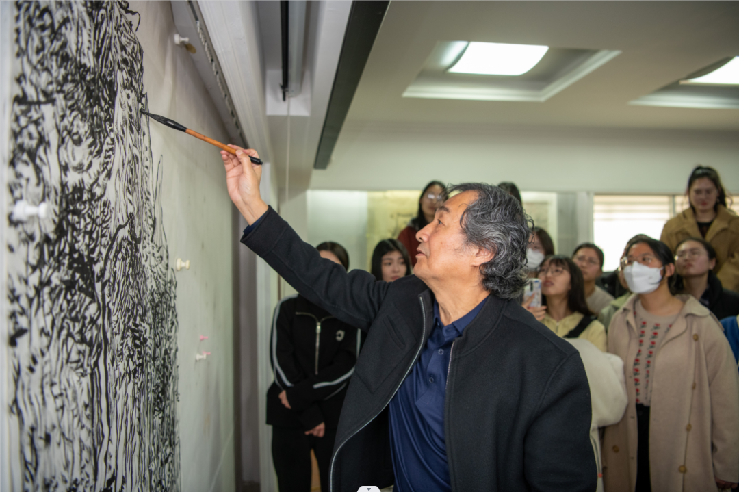 讲座和示范结束后,张建华教授走访了国画教师工作室和研究生教室,对师生近期创作作品和艺术项目等分别给予具体针对性的指导。