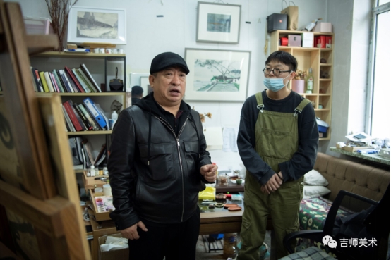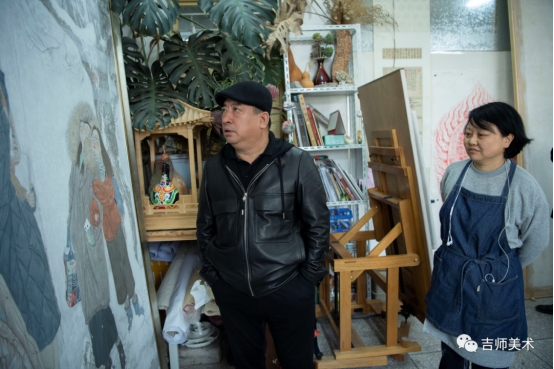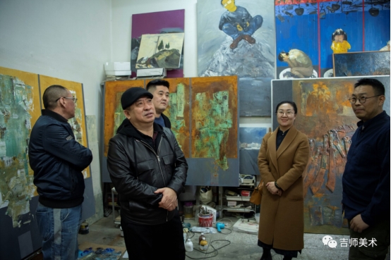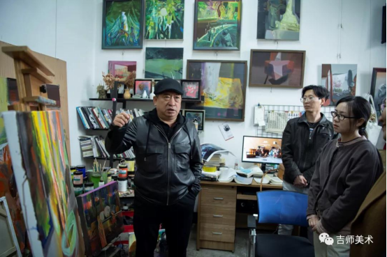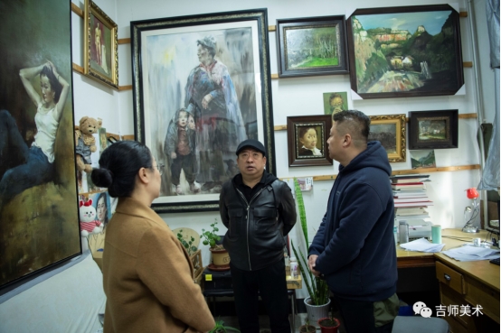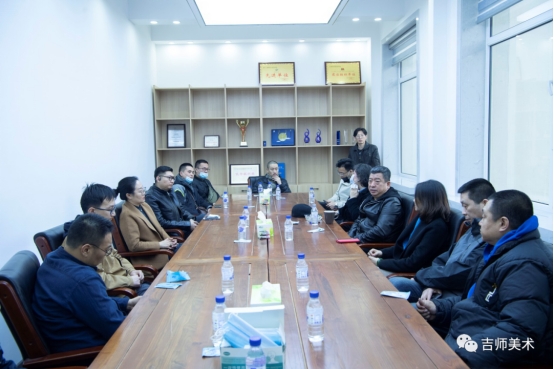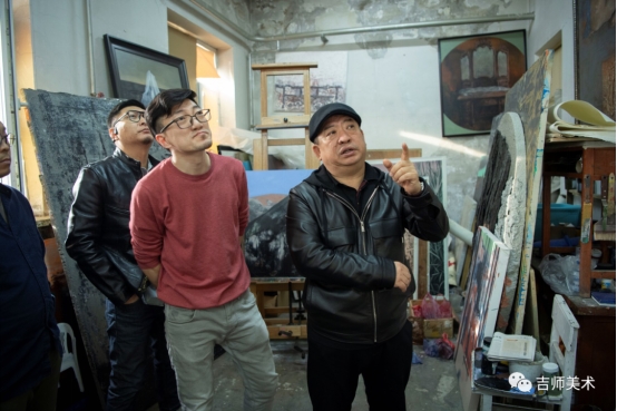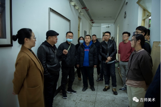 走访工作室后,王建国教授针对美术学院教师整体作品,结合当前学院美术教育和区域艺术生态等话题,与学院师生座谈。四平美术馆馆长王小清及馆内工作人员陪同参观与交流。