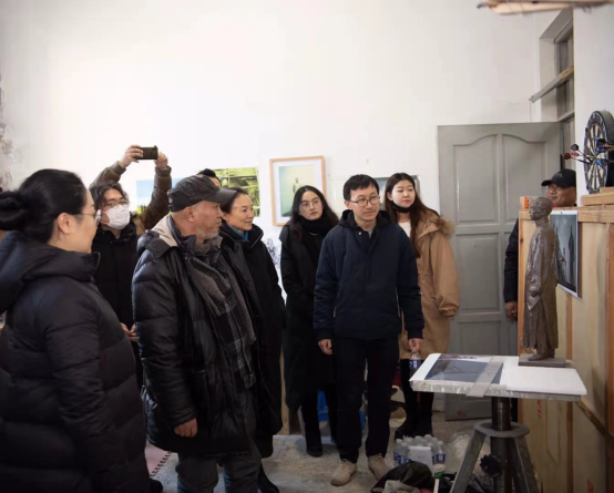 2020年12月21日下午,东北师范大学美术学院教授委员会主任、博士生导师,中国美术家协会综合材料艺委会委员宋学智教授莅临我院,走访教师工作室,结合教师近期作品和创作小稿,给予具体建议与指导。四平市美术馆王小清馆长及馆内青年艺术家同行交流。