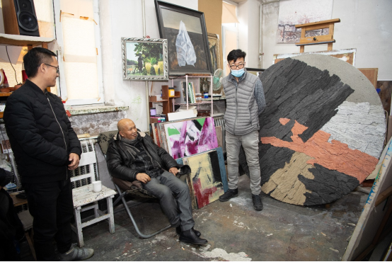 走访之后,宋学智教授针对绘画材料与表达、主题性美术创作与展览、项目申报等问题进行对话座谈。