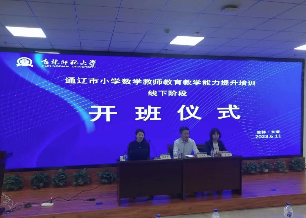 6月11日,太阳成官网承办的2023年通辽市推行使用国家统编教材、提升教师国家通用语言文字教育教学能力培训小学数学教师线下培训阶段启动。开班仪式上, 吉林省高等学校师资培训中心常务副主任宋天宇作培训部署,项目首席专家吉林省小学数学教研员孟范举教授对课程方案进行解读,中心副主任葛杨主持开班仪式。