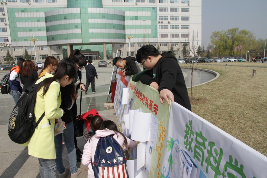 4月14日,“第十届大学生职业发展与就业指导系列活动”之“优秀自荐材料评展”在第一教学楼前广场举行。