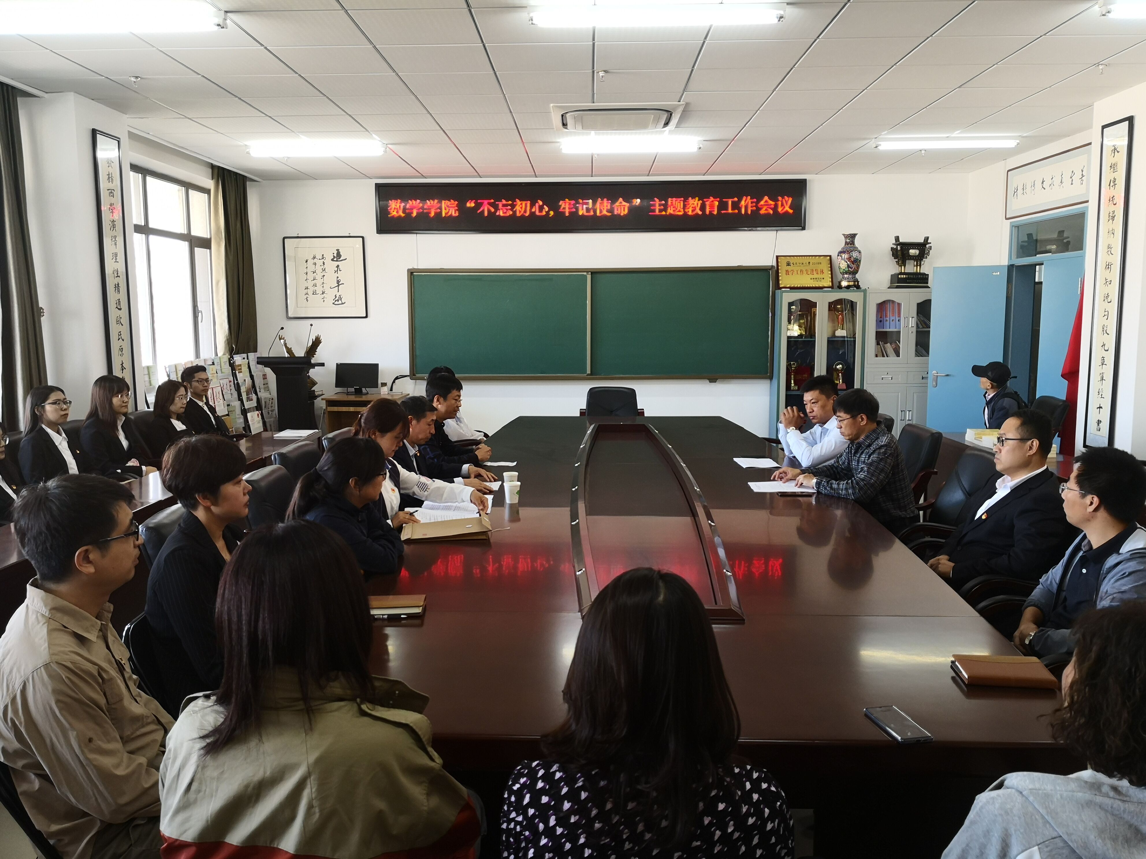 9月16日,数学学院在学院会议室召开“不忘初心、牢记使命”主题教育工作会议,学校第四巡回指导组组长邱中信,成员代牧到会指导。学院全体师生党员参加了会议。会议由院长刘鹏飞主持。