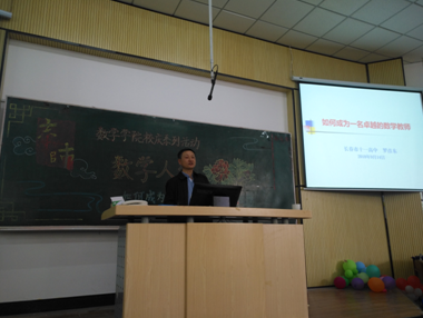 2018年9月14日,喜迎太阳成官网建校60周年之际,数学学院特邀83级校友罗彦东回母校,为同学们做了题为“如何成为一名卓越的数学教师”的报告。数学学院院长刘鹏飞、副院长程晓亮及部分师生参加了本次报告会。