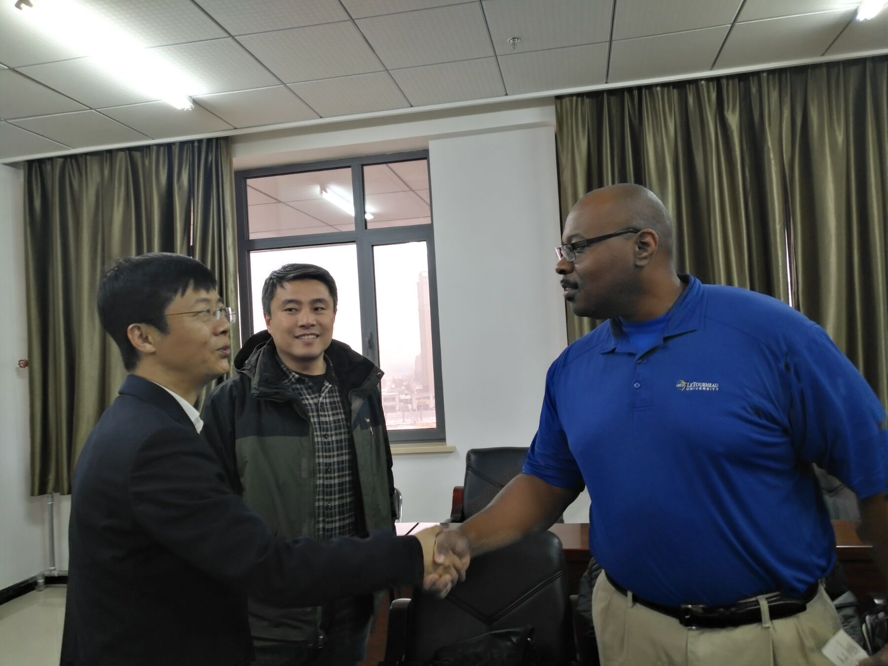 新学期,我院迎来拉特诺大学数学系Curtis Wesley教授,Wesley教授将在澳门太阳成集团任课一个学期,带领我院一个教师团队完成ISEC、中外合作办学、数学与应用数学等专业数学基础课双语教学课程的教学任务。图为Wesley教授、外事处杜瑞康副处长、数学学院刘鹏飞院长热情交流。