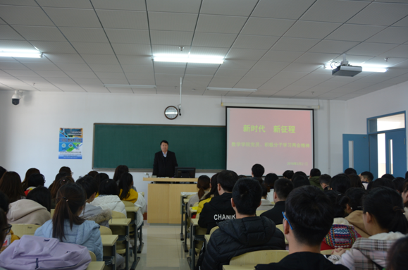 为了使学生深入学习两会精神,数学学院于2018年3月20日,在11505教室召开了以“新时代,新征程”为主题的两会精神动员大会。党委副书记王佰海、分团委书记李萌、辅导员刘春亮及全体学生党员、学生干部积极分子、参加了本次大会。