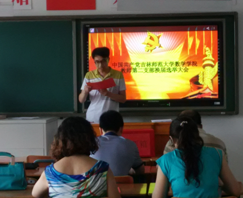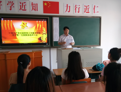 2016年7月9日下午,数学学院两个教师党支部及两个学生党支部同时举行换届选举大会。各党支部负责人做了工作报告,大会选举产生了新一届党支部委员会,并由党支部委员会选举产生了新一届党支部书记。党支部换届选举大会是数学学院党委政治生活中的一件大事,大会的顺利举行进一步提高了基层党组织的凝聚力和战斗力。