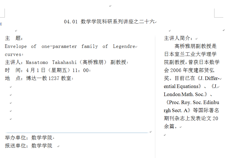 数学学院科研系列讲座之二十六