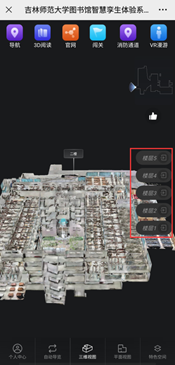 点击“分馆”,可切换查看四平校区跟长春校区图书馆全景