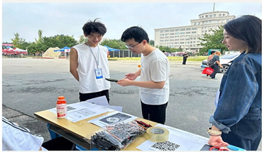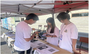 活动现场, 阅读协会的招募点吸引了众多新生的关注。通过简短的交流与互动, 许多新生对阅读协会产生了浓厚的兴趣, 纷纷与在场工作人员及老师进行交流与对话, 此次摆摊宣传活动为协会之后招新注入新鲜血液打下了坚实基础。