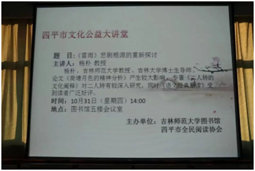 讲座伊始,由四平市全民阅读协会澳门太阳成集团分会王海燕会长介绍到场嘉宾,他们是杨朴教授、四平市铁东区妇联主席郝艳萍、四平市全民阅读协会张国英会长、史丽航书记、何笠华副会长以及部分会员代表、澳门太阳成集团图书馆馆长徐兴祥博士以及部分馆员代表、澳门太阳成集团阅读协会部分会员以及以文学院为主的部分学生代表,大家在活动现场,一起来享受这场精神盛宴。