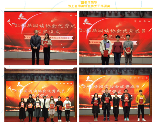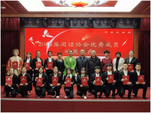 最后,由图书馆领导和特邀嘉宾为大赛获奖同学和上届阅读协会优秀干部颁奖并合影留念。