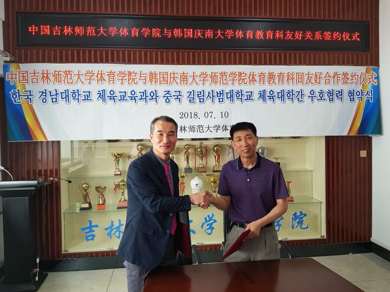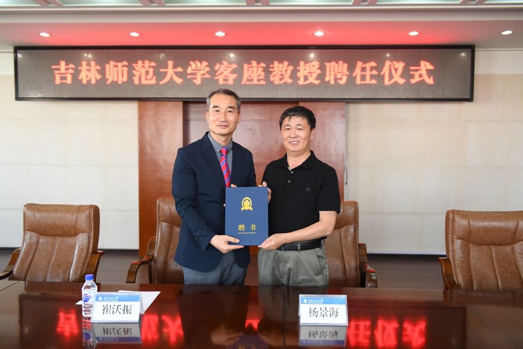 7月10日,太阳成官网在第一教学楼八楼会议室举行客座教授聘任仪式,聘任韩国庆南大学师范学院体育教育科教授、博士生导师、体育指导研修院副院长崔沃振教授为客座教授。校长杨景海教授出席聘任仪式,并为崔沃振教授颁发聘书。人事处、体育学院负责人及部分教师参加了聘任仪式。聘任仪式后崔沃振教授与我院吉学武院长在学院会议室签订了校级间合作协议,并就体育教学和科研工作进行了友好交流。