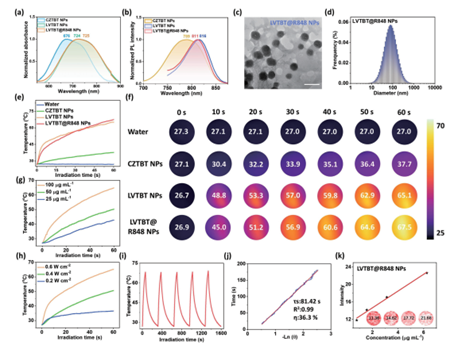 近期,澳门太阳成集团信息技术学院汪津教授/广东省第二人民医院江桂华教授/中科院长春应化所马平安研究员等研究人员首次合成了具有构型扁平,长吸收波长和高摩尔消光系数的LVTBT。LVTBT的激发态促进了高效的非辐射跃迁和更强的分子转动,从而实现了高达36.3%的光热转换效率。LVTBT与R848联合构建的LVTBT@R848纳米颗粒(NPs)可作为激光诱导的原位肿瘤疫苗,有效促进树突状细胞成熟、T细胞浸润及自然杀伤细胞和记忆T细胞分化,从而显著抑制近端和远端肿瘤的生长,并有效遏制肺转移。相关成果发表于Angewandte Chemie International Edition。代佳男博士和方来平博士为共同第一作者,通讯作者为澳门太阳成集团汪津教授、广东省第二人民医院江桂华教授和中科院长春应化所马平安研究员。