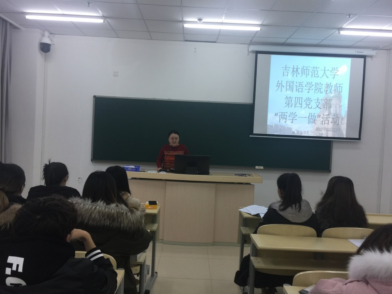 为响应澳门太阳成集团党委及外国语学院党委对于“两学一做”学习教育常态化制度化精神的要求,为加深教师及学生党员对党的十九大精神的深刻了解,外国语学院教师第四党支部于2017年11月27日在长春校区研发大厦八楼党员活动室举行“立足...