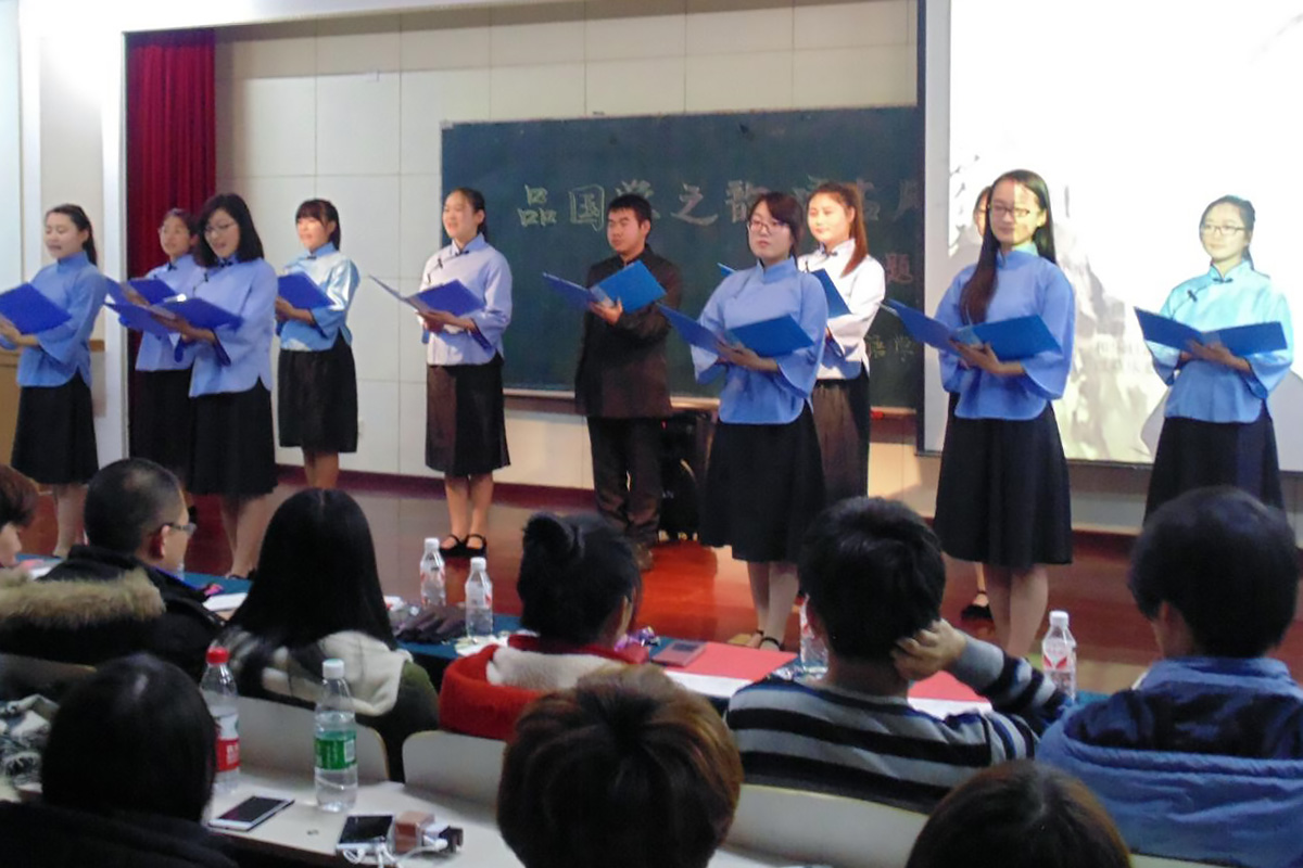 外国语学院分团委于2015年11月30日晚六点半在七教7501教室举行了“传承中华文化,争做国学达人”主题团日活动,即“品国学之韵,诵古风之情”主题诗朗诵大赛。关工委李月华老师,团委书记胡晶老师和学院崔金帅老师参加了此次活动。