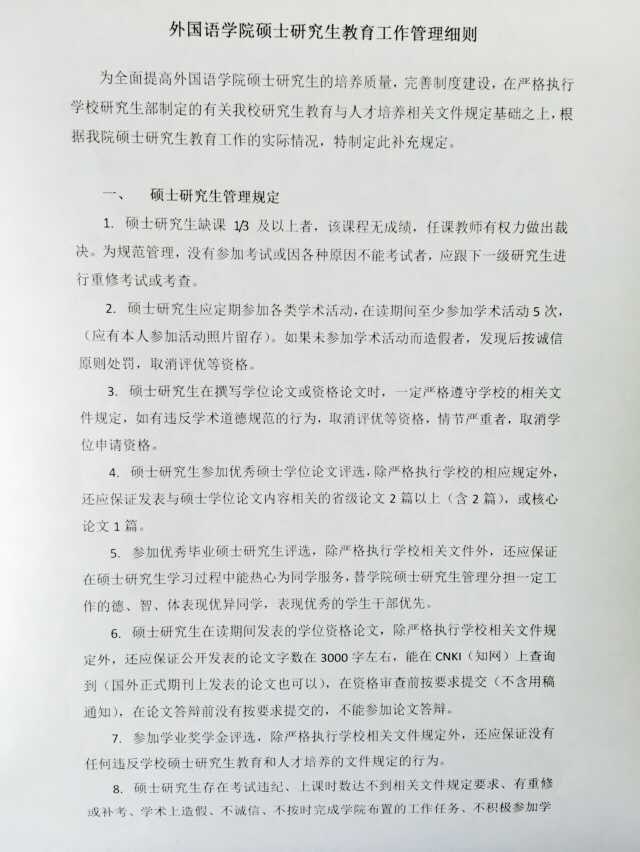 《外国语学院硕士研究生教育工作管理细则》见附件:
