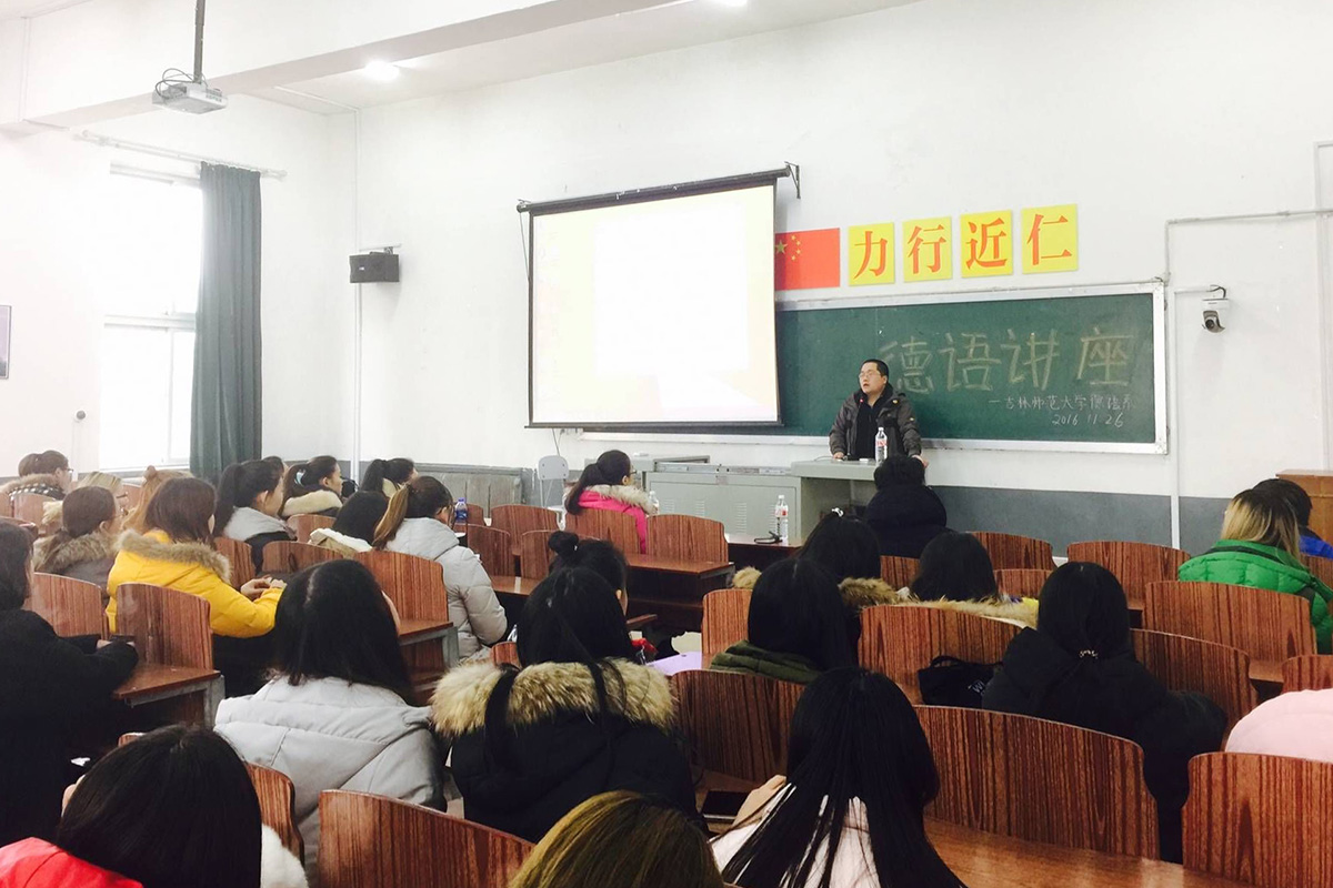 外国语学院德语系于2016年11月26日邀请吉林华桥外国语学院德语教研室主任严寒进行了汽车德语讲座。